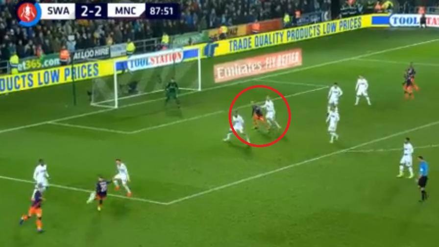 Sergio aguero scores a dramatic winner for manchester city at swansea despite looking to be in an offside position.